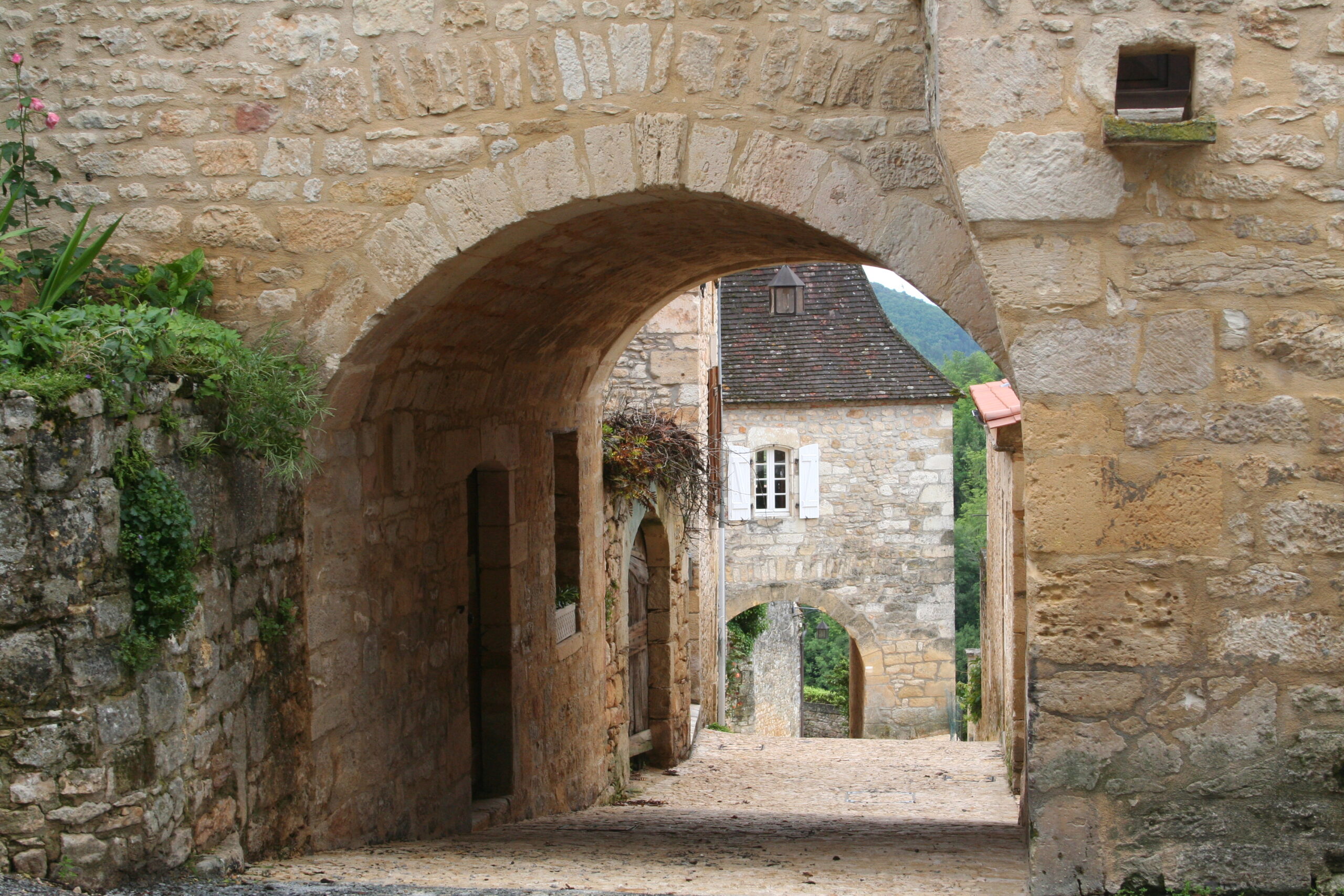Parcourez le bourg : ses petits chemins pavés, ses ruelles entremêlées, de porches et de passages où s’épanouissent glycines, lierres, vignes, bignones, et autres gauras.