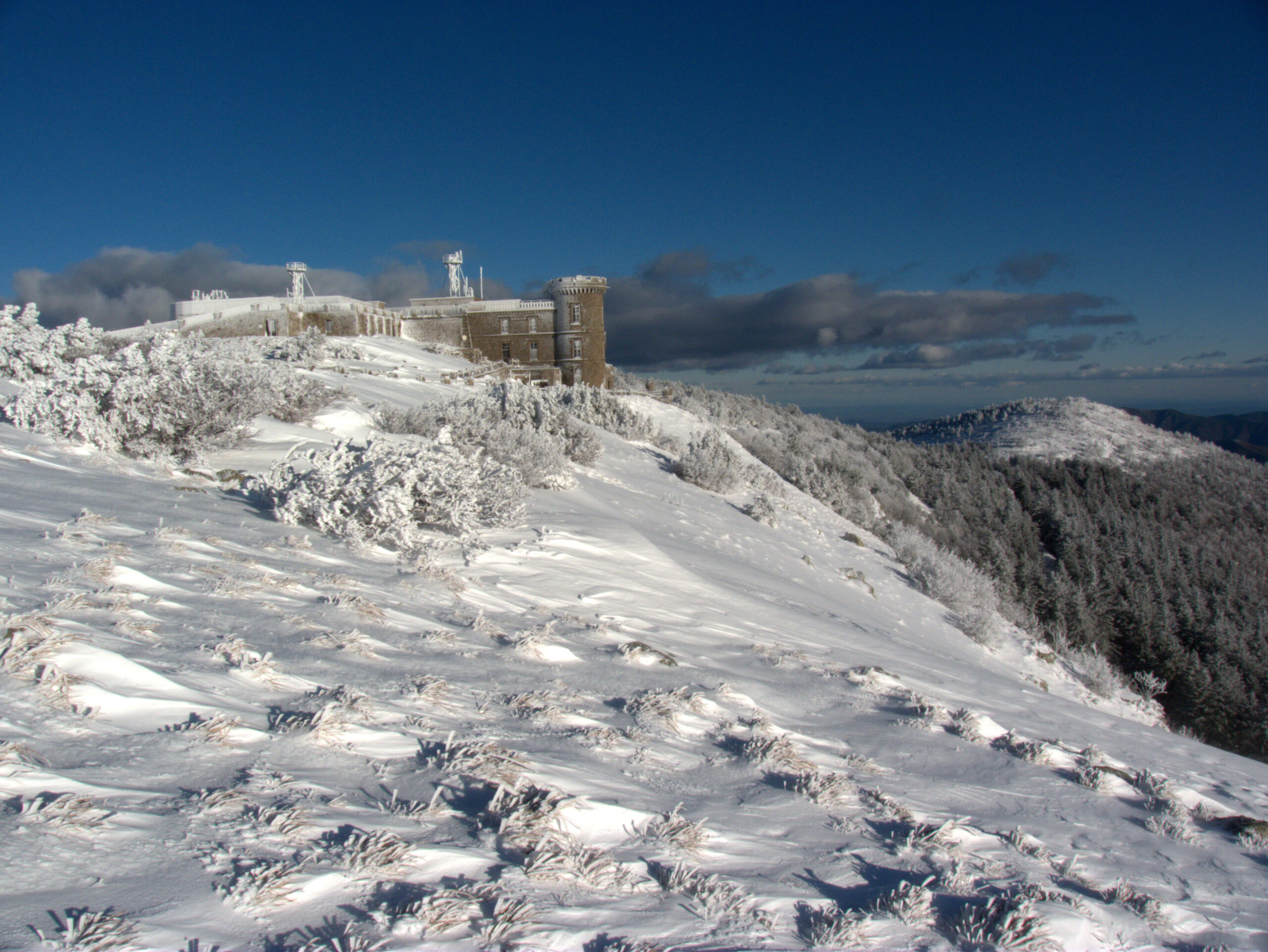 Plus haut, les « traversiers » dessinent des rubans de pierre où paissent brebis et chèvres. La route rejoint alors le Mont Aigoual ; l’hiver, la station familiale de Prat Peyrot trace ses pistes enneigées silencieuses, et dès le printemps, le Climatographe de l’Observatoire dévoile tout du changement climatique au visiteur du sommet. Ici le panorama à 360° embrasse la Méditerranée, les Pyrénées et les Alpes, et rappelle qu’ici, chaque horizon se mérite et se protège.