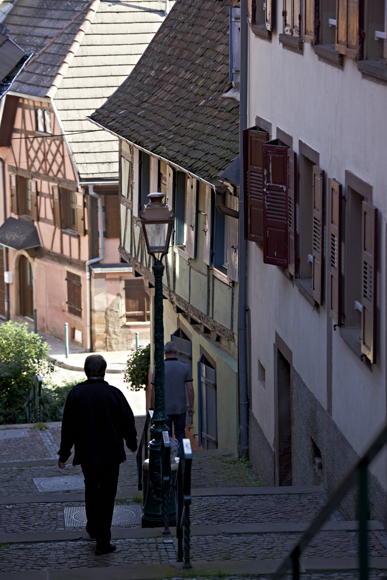 À l’entrée de la Vallée de la Mossig, les maisons à pans de bois forment un écrin coloré dont les toits en queue-de-poisson dominent le cours d’eau. En grimpant vers la colline, le visiteur découvre les vestiges du château médiéval : de l’ancienne tour maîtresse, la vue embrasse les collines cultivées et les bouquets de hêtres. Plus loin, les tourelles cuirassées du Fort de Mutzig rappellent l’épopée de Guillaume II et offrent un parcours souterrain saisissant. L’histoire locale se lit aussi en ville grâce au circuit des emblèmes des métiers d’autrefois, un chemin ponctué de ferronneries qui évoquent tanneurs, boulangers ou potiers.